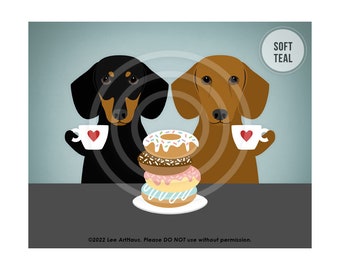509dp Two Dachshund Dogs Eating Donuts Wall Art Coffee And Etsy
